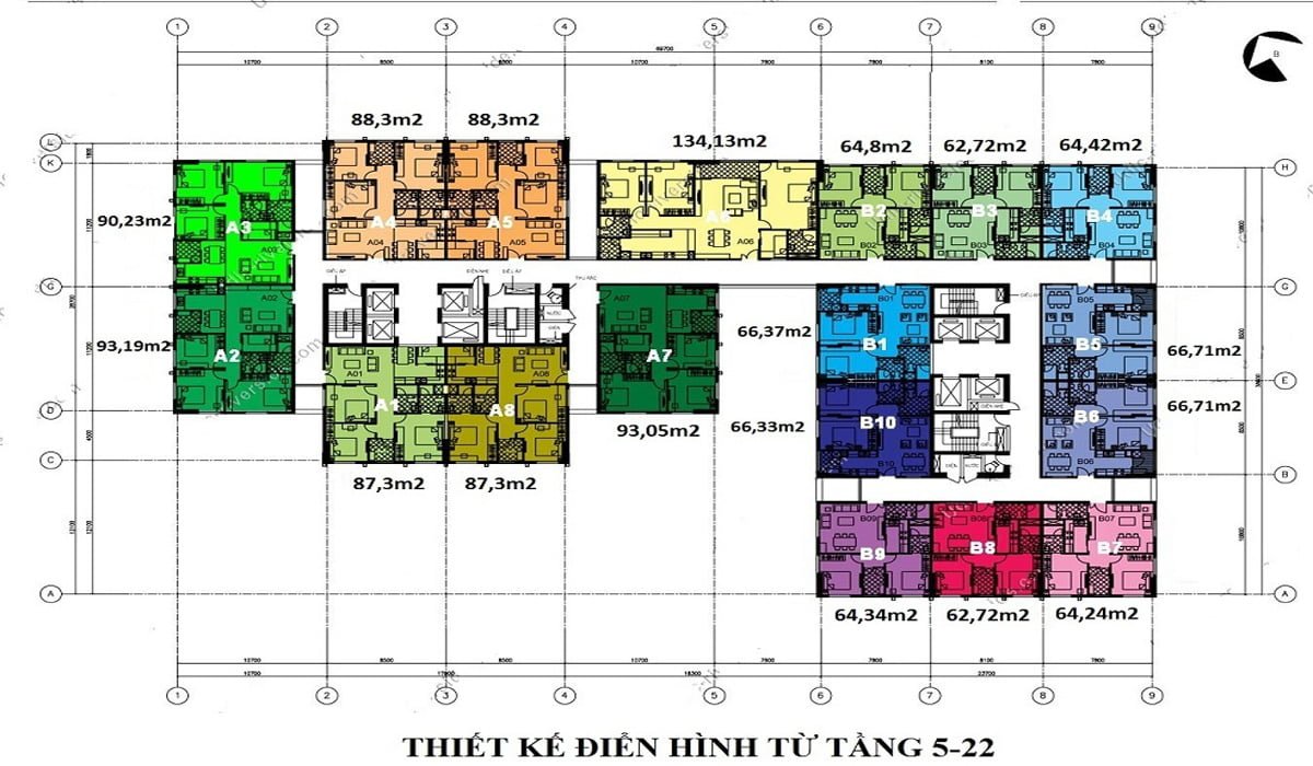 * Toàn bộ tòa A: Diện tích căn hộ 3 phòng ngủ: 88m, 90m, 93m, 134m